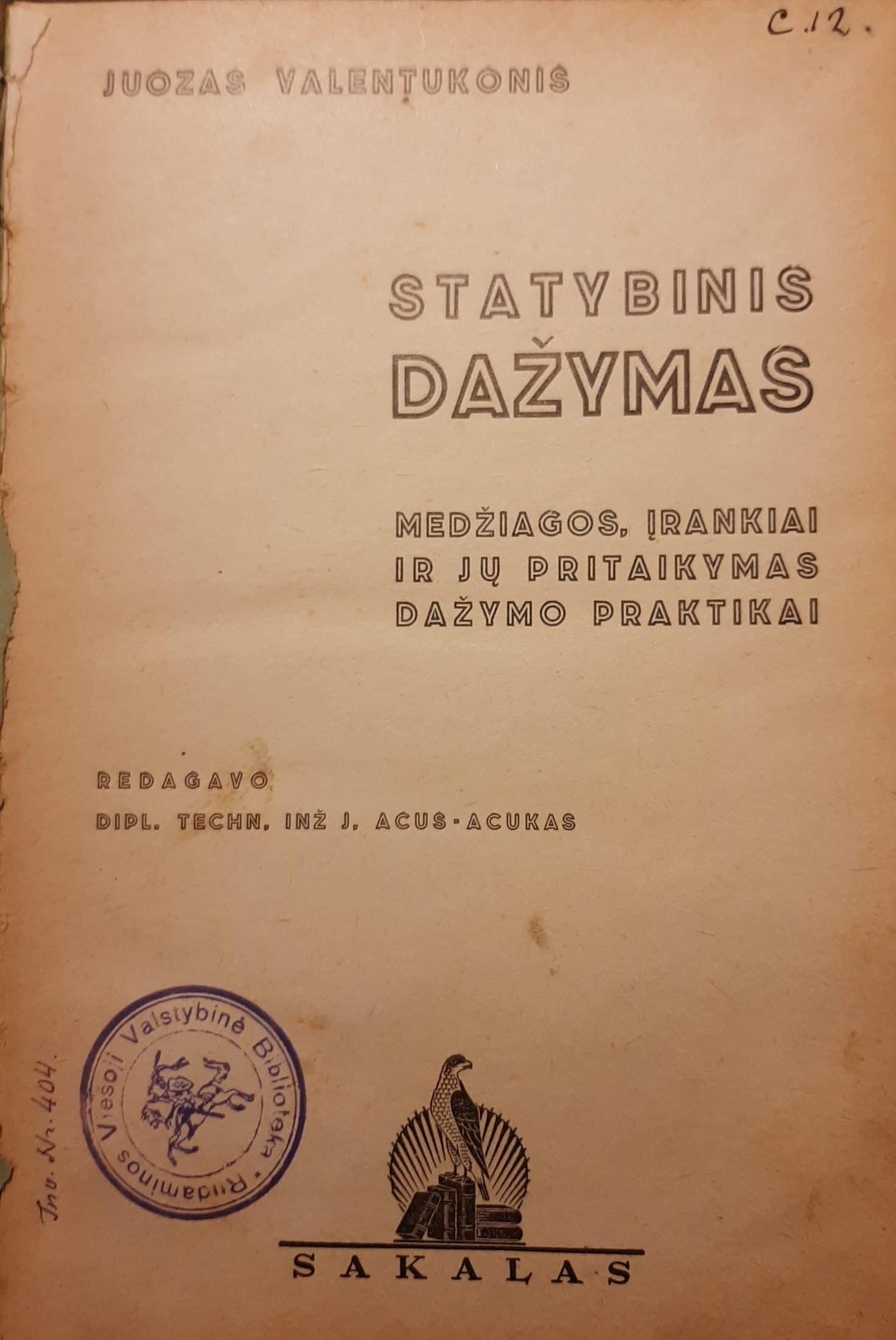 Juozas Valentukonis „Statybinis dažymas: medžiagos, įrankiai ir jų pritaikymas dažymo praktikai“ (Sakalas, 1936)