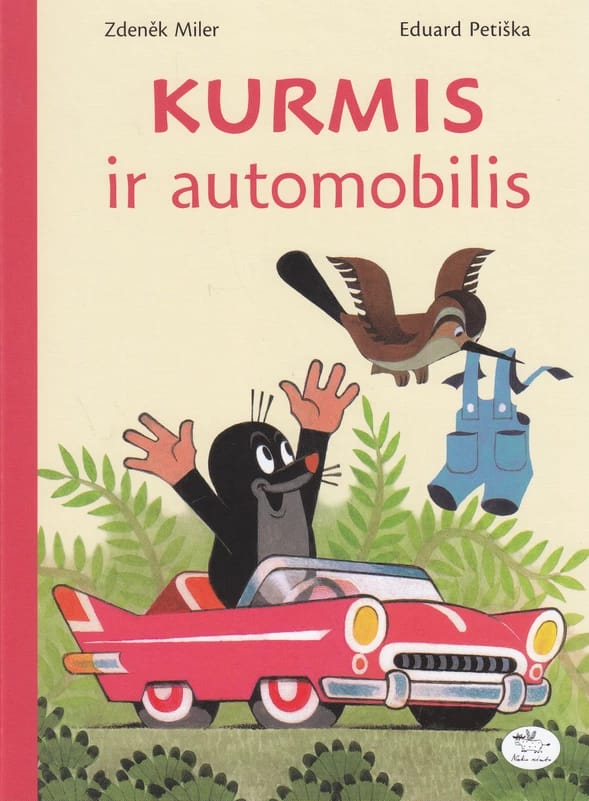 Temos automobilis, čekų autoriai, Kurmis, mylimas vaikų herojus, paveikslėlių knyga, raktelis, raudonas automobiliukas, Zdenek Miler