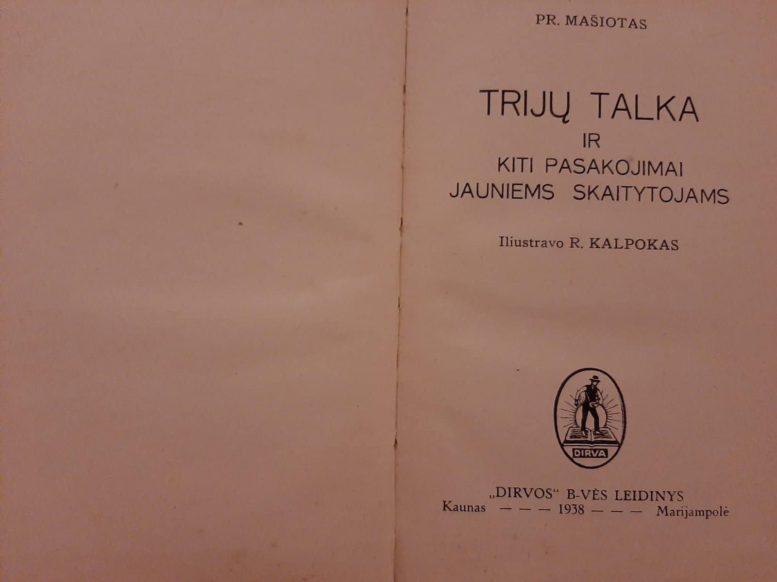 / P. Mašiotas „Trijų talka ir kiti pasakojimai jauniems skaitytojams (1938 m)